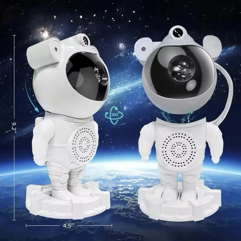 رأس رائد الفضاء قابل للحركة، ما يسمح لك بتوجيه الإضاءة إلى السقف أو الجدران حسب المكان الذي تريده. هذه المرونة تمنحك حرية كاملة في خلق الأجواء المناسبة لأي غرفة.